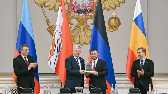 В среду, 26 ноября, в Воронеже состоялось заседание Совета Содружества «Донбасс». На совещании были подведены итоги работы отраслевых рабочих групп и озвучены предложения в план работы на 2026 год. В мероприятии приняли участие губернатор Воронежской области Александр Гусев, глава Донецкой Народной Республики Денис Пушилин, глава Луганской Народной Республики Леонид Пасечник и первый заместитель губернатора Ростовской области Алексей Господарев. Подробнее – в материале РИА «Воронеж».