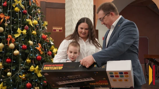 Любителю музыки и музыкальных инструментов Федору Попову Александр Леонов вручил синтезатор.